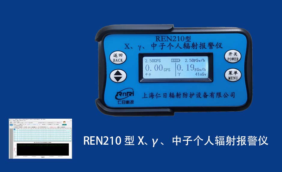 REN210型X、γ、中子個人輻射報警儀內(nèi)置SiPM和鋰玻璃晶體組成中子探測器儀器,采用反照率方式探測中子射線,同時也能探測X、γ射線。因此它可同事監(jiān)檢測X、γ、中子三種射線。能顯示工作場所的劑量當(dāng)量率和累積劑量,更換電池時,日期及累積數(shù)據(jù)能永久保存。可選配RenRiPersonal個人劑量管理軟件,該軟件可存儲多個人的歷史數(shù)據(jù),能記錄日累積、月累積、年累積、輻照時長、計算平均劑量率、扣除或不扣除本底輻射,且以文字和圖譜的方式展現(xiàn)數(shù)據(jù)。廣泛應(yīng)用于環(huán)保、化工、水泥、煤礦、土木工程、石油、醫(yī)院、疾控、進(jìn)出口商檢、核電、加速器、機(jī)場、中子源庫和其他安檢、邊境控制海關(guān)檢測等領(lǐng)域中的工作人員進(jìn)行個人安全防護(hù)監(jiān)測及放射性提示。